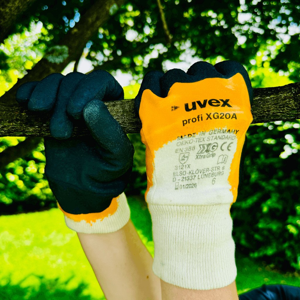 Die Arbeitshandschuhe von uvex, Modell 60208 Profi Ergo XG20 A, bestehen aus Stoff, was angenehm auf der Haut ist - gerade an warmen Tagen. Der Handschuh ist mit Gummi beschichtet, was besondere Sicherheit bei der Gartenarbeit ausmacht. Zu dem ist der Handschuh ergonomisch geformt und wasserfest. Die Größen fallen normal aus.