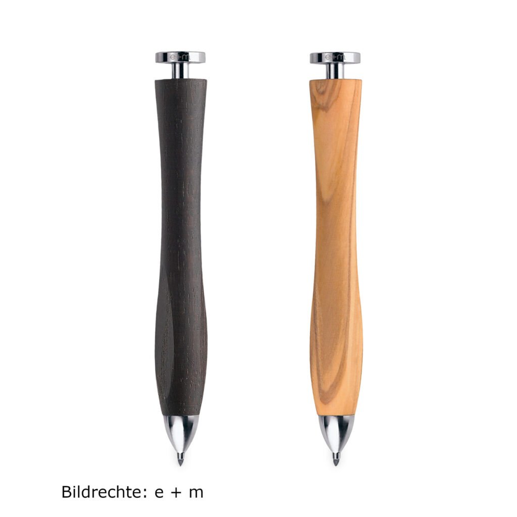 Diesem Anspruch folgt auch Matthias Bellan, der ab dem Jahr 2021 als Inhaber und Geschäftsführer e +m leitet. Zukunftsweisend: mit Bekenntnis zu „Made in Germany“ und „Nachhaltigkeit“. Sämtliche Schreibgeräte bestehen aus nachhaltigen, heimischen Hölzern.
