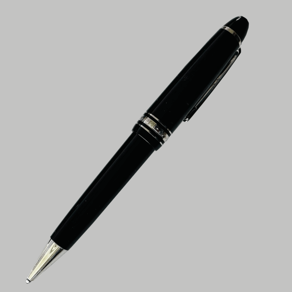 Der Kugelschreiber der Serie "Meisterstück" von MONT BLANC ist eine werthaltige Stilikone der Schreibgeräte. Er besteht aus schwarzem Edelharz. Die Beschläge (Zierleisten, Clip) sind gelb- oder rosevergoldet oder platiniert. Der Stift ist in verschiedenen Größen erhältlich: (Mozart: L 105,8 mm, Classique: L 137,1 mm, Midsize: L 141,7 mm, Le Grand: L 147,9 mm). Die Minen sind gut erhältlich in schwarz und blau, sowie in verschiedenen Breiten (dünn, mittel, breit sehr breit).