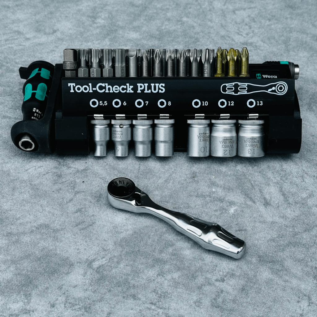 Das Wera Multiwerkzeug Tool-Check ist ein überaus vielseitig einsetzbares Multiwerkzeug, ideal für sonst unhandliche Schraubsituationen. Mit Bit-Ratsche Zyklop, Handhalter, sehr robusten und zahlreichen Bits und Nüssen ermöglicht das Werkzeug ein gutes Arbeiten auf engstem Raum. Immer wenn kein Akkuschrauber oder herkömmliches Werkzeug eingesetzt werden können: Hier ist die Lösung! Robuste gesenkgeschmiedete Vollstahlausführung.