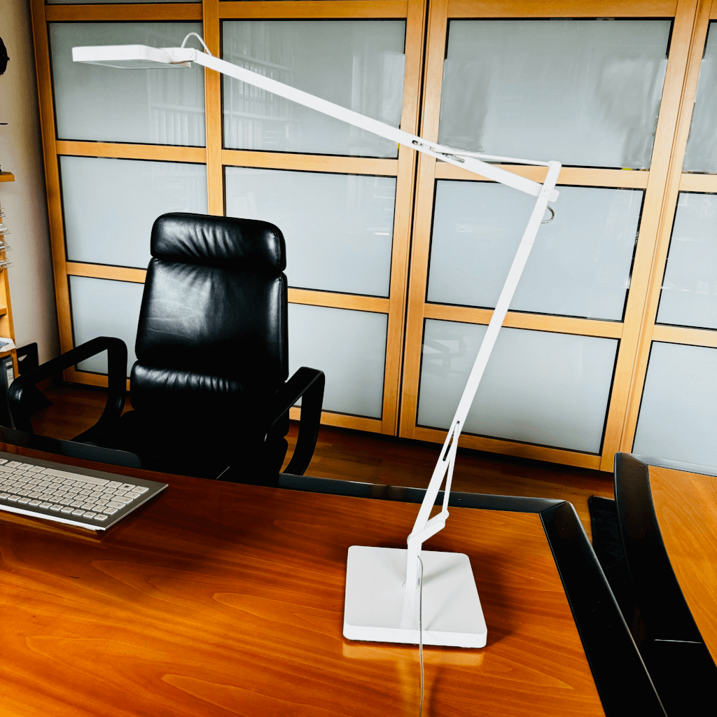 Erfahrungsbericht: Unser Schreibtisch steht im Wohnzimmer, deswegen lieben wir diesen minimalistischen Lampenaufbau. Die Lampe ist ideal für die Ausleuchtung des Gesichtes bei Videokonferenzen (Kamera), da sie sehr flexibel zu handhaben ist. Sie bietet angenehmes Licht für die Schreibtischarbeit.