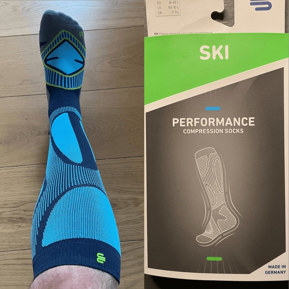 Erfahrungsbericht: Die Kompressionsstrümpfe geben Halt und unterstützen beim Skifahren oder Wandern. Hast Du diese Strümpfe, hast Du keine Falten. Die Kompression ist deutlich spürbar.